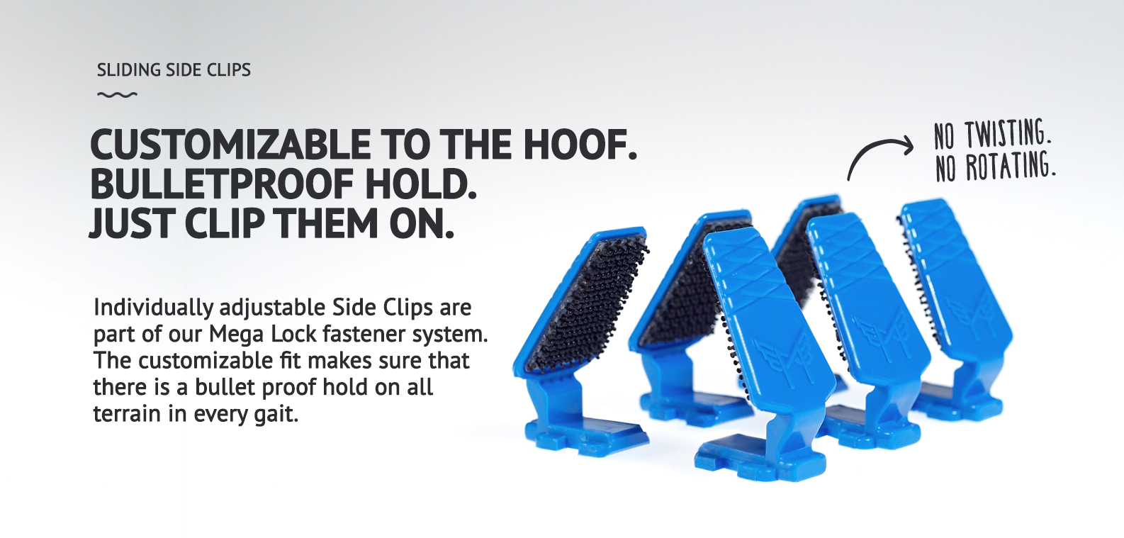 Megasus Horserunners are designed, first of all, for leisure riders who want to jump in the terrain through some obstacles. This has already tested very positively, but we are still testing. Shear forces during jumping are absorbed by the Side Clips which are extremely stabile. The Mega-Lock connection is mainly demanded in deep ground when the hoof pulls up. It will be task of the next tests to prove in how far the Megasus will go in challenging sports.