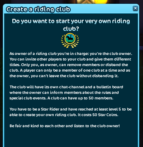 – At Star Stable we create our own riding clubs and invite our friens to join us, we even have a private chat channel. In this club, we each friend has a role and we plan trail rides, special parades or even an awesome picnic!